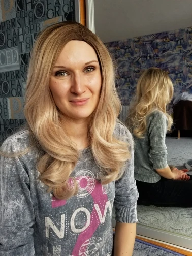 Cool wig! Hair looks like real! He doesn't. True, very confused hair, you need to very carefully handle. Made qualitatively, even on the sides from the inside are sewn small strands to look natural. The color is also natural. It came quickly.